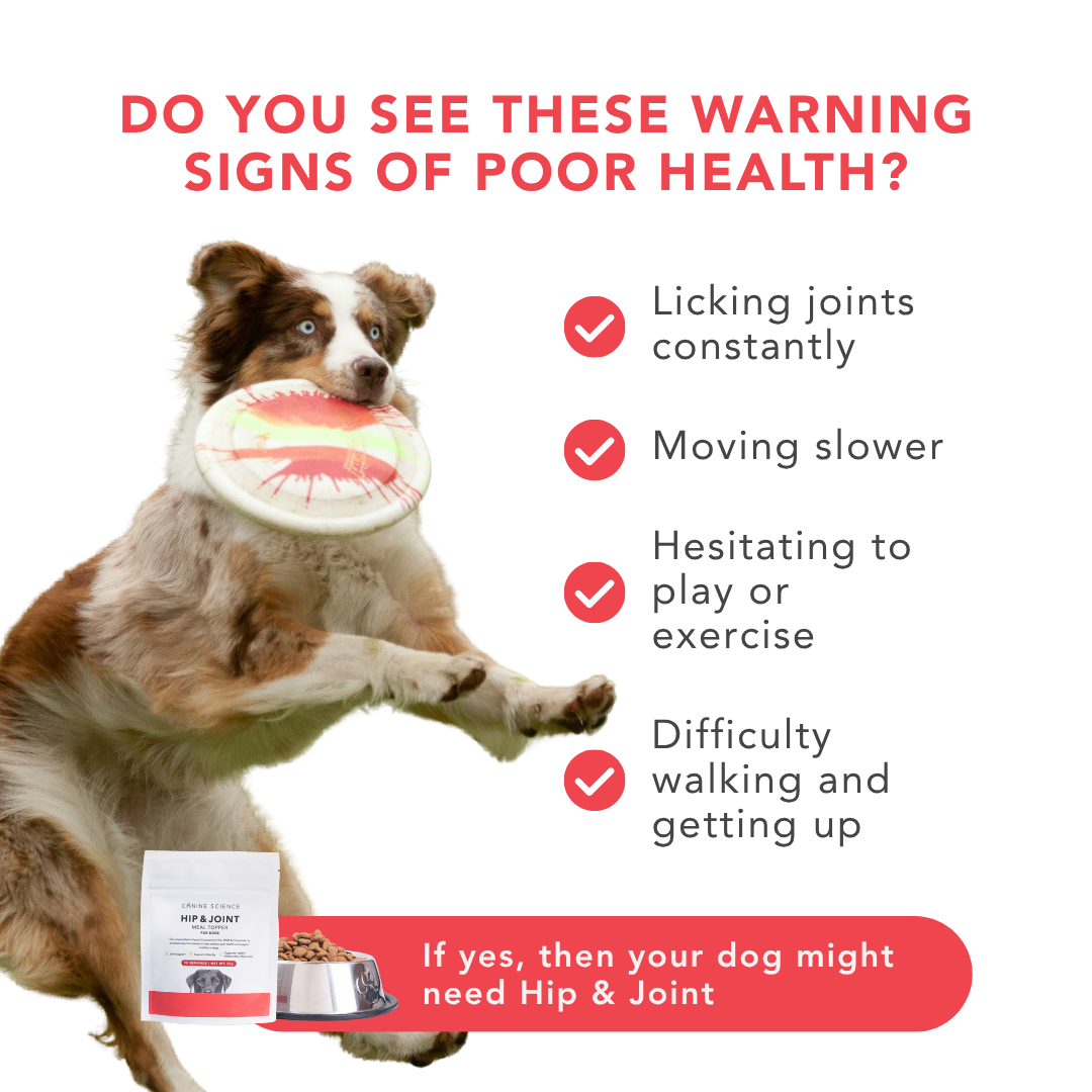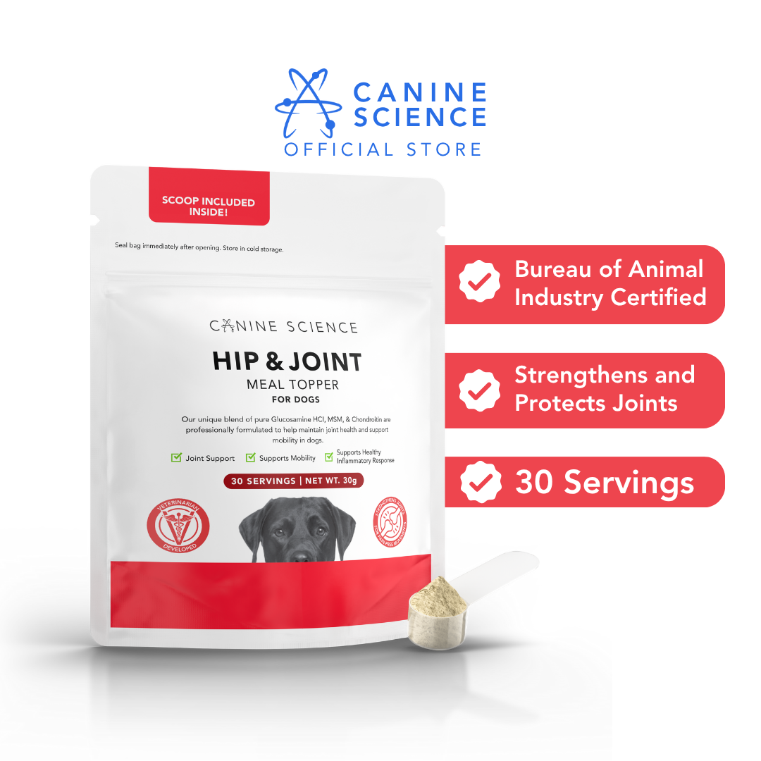 Canine Science has developed a break-through science-based formula that eliminates the hassle of pills and tablets for joint support. It is a delicious meal-topper that will have great results on your dog's joint mobility.