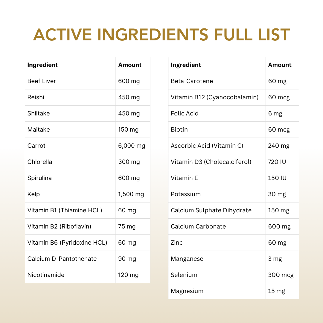 Rich in iron and vitamin A, this blend supports enhanced energy and better vision.
