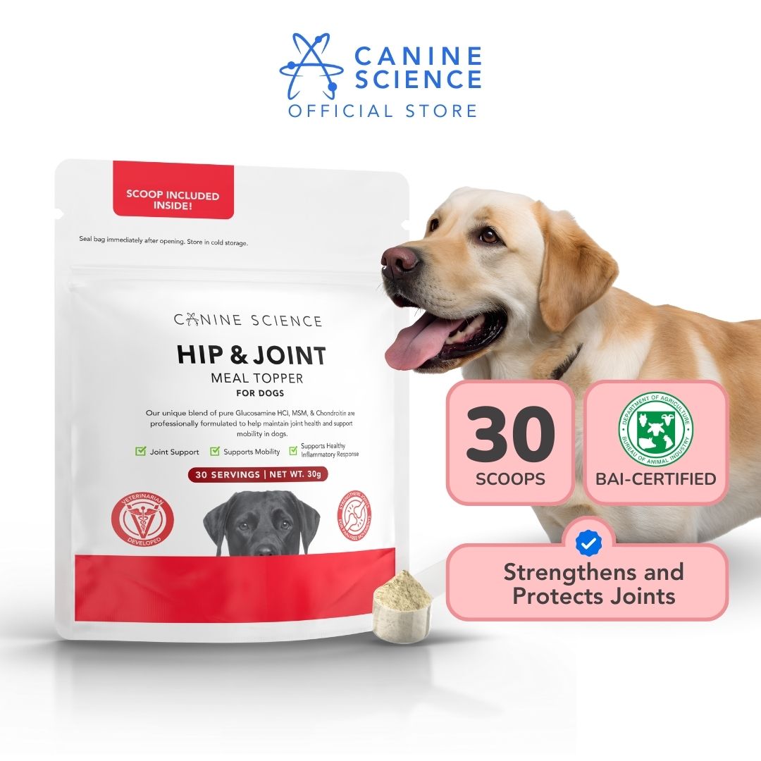 Canine Science has developed a break-through science-based formula that eliminates the hassle of pills and tablets for joint support. It is a delicious meal-topper that will have great results on your dog's joint mobility.